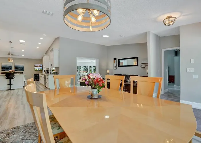 Large Upscale Home With Pool 7 Mi To Beaches! is situated around 10 minutes by car from Indian Trails Sports Complex in Palm Coast and offers accommodation with a fully-fitted kitchen. 4 bedrooms and 2 bathrooms can be found at this property.